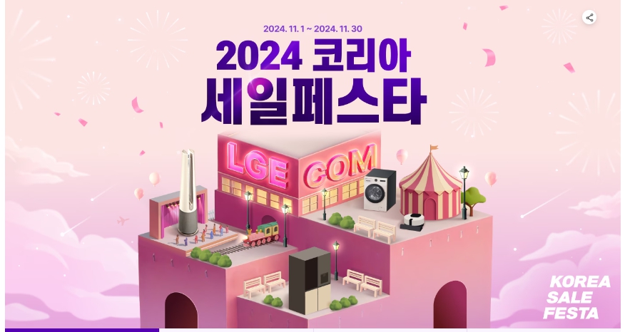 2024 코리아세일페스타에서 가전제품에 대한 할인 정보는 다음과 같습니다. 이번 행사에서는 삼성전자와 LG전자를 포함한 주요 가전 브랜드들이 다양한 할인 혜택을 확인하시고 득템하세요~