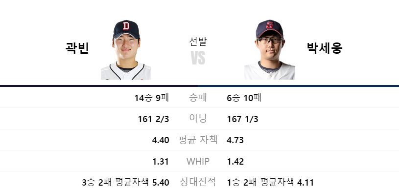 ✅곽빈 : 곽빈은 빠른 공과 다양한 변화구를 구사하며, 특히 슬라이더와 체인지업이 강점입니다. 그의 K/9(9이닝당 탈삼진 수)는 8.35로, 타자들을 잘 압박하고 있습니다.