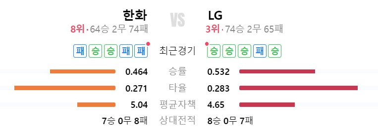 KBO프로야구 8위 한화와 3위 LG와의 맞대결이 25일에 펼쳐집니다.
