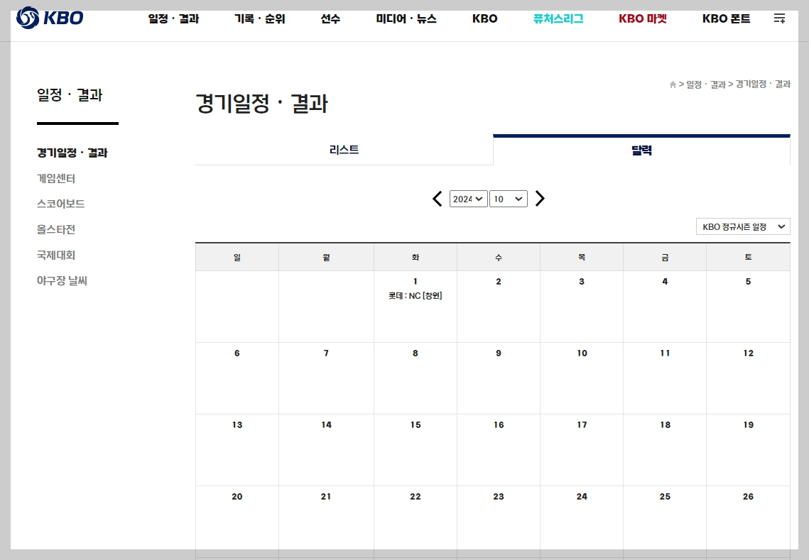 정규시즌이 끝나는 10월 1일에 2024년 포스트 시즌 경기 일정이 나올 예정입니다.